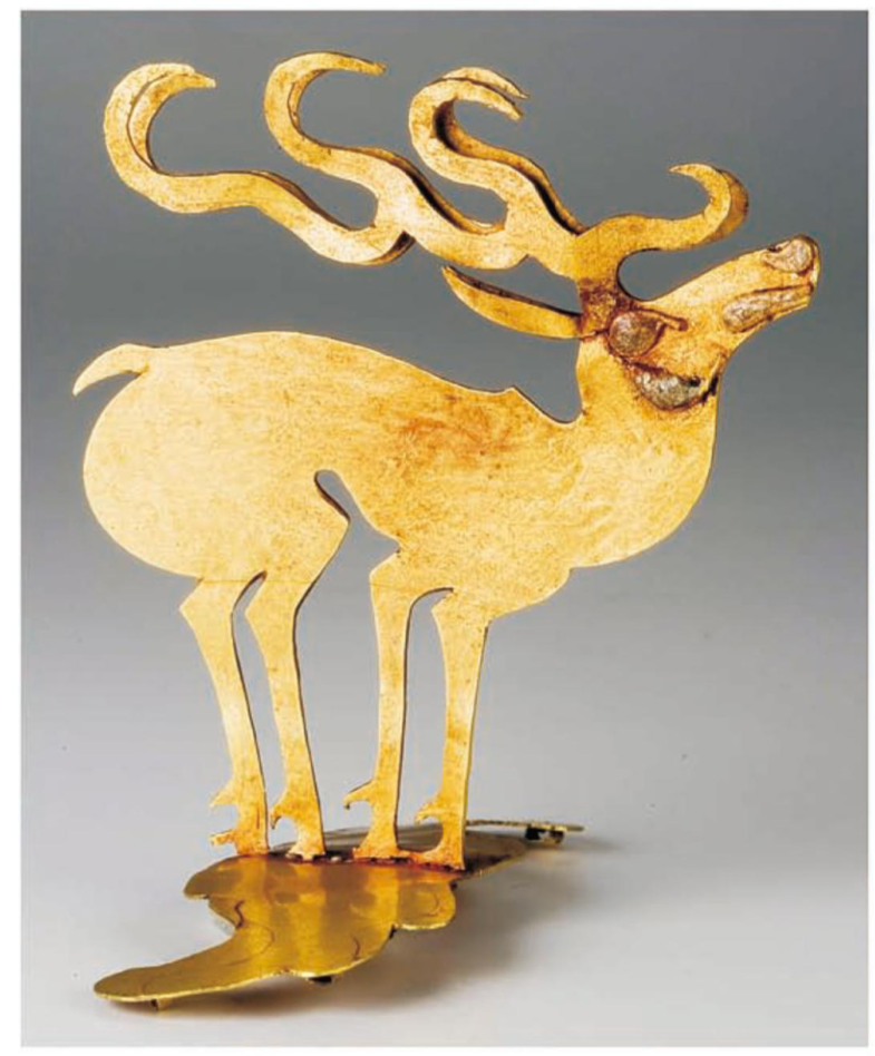 사슴돌에서부터 내려오는 곧 추선 사슴장식은 기원전 6세기(혹은 5세기) 까지 이어지고 그리고 그 변형문양이 시작된 것도 기원전 6세기, 극대화된 시점은 기원전 5세기 해발 1500m이상의 유적에서 발견된다.
