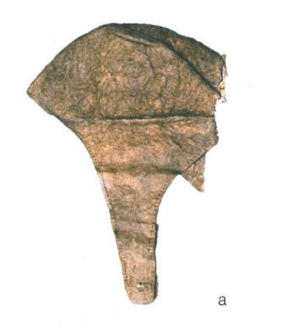 그런데 베르흐 칼쥔 II유적의 1호 남성에게도 비슷한 모자(그림 4)가 있었는데, 고깔 부위가 없는 것으로 파지리크 유적 2호의 남성모자와 비슷하다. 이들 모자를 투구와 흡사하다고 해서 투구형이라고 불렀다.