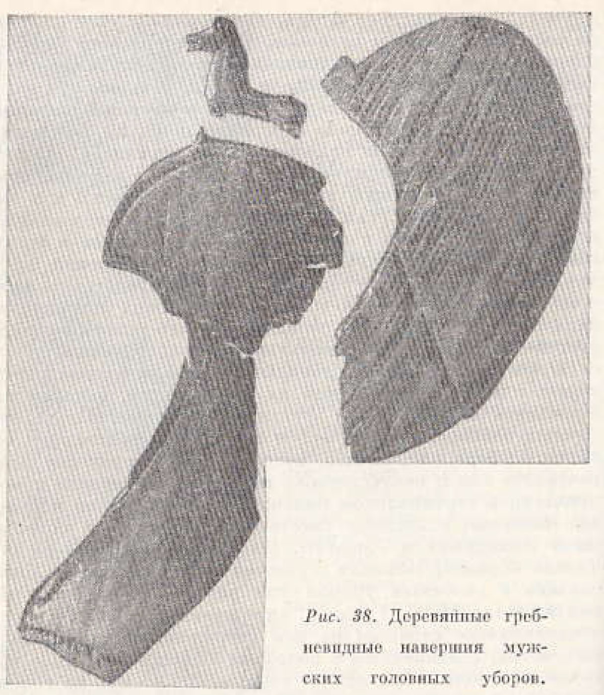 베르흐 칼쥔 II유적의 남성모자는 새머리를 펠트로 조각내고 그 상단에 굽동물장식을 세운 것이지만, 아크 알라하-1 유적의 모자는 새머리 자체가 목제로 된 것이기 때문이다. 실제로 어떤 의미가 있는지는 모르겠지만 이 두 유적에서 나온 유물을 바탕으로 울란드리크 강의 유적, 추야 강, 바르부르가지 강, 우르술 강의 유적등에서 나온 유물 가운데 머리 맡에서 출토된 유물을 살펴본다면 좀 더 뚜렷해질 것이다. 이미 쿠바레프가 이들 유적을 보고 할 당시에 모자장식이라고 보고했다.