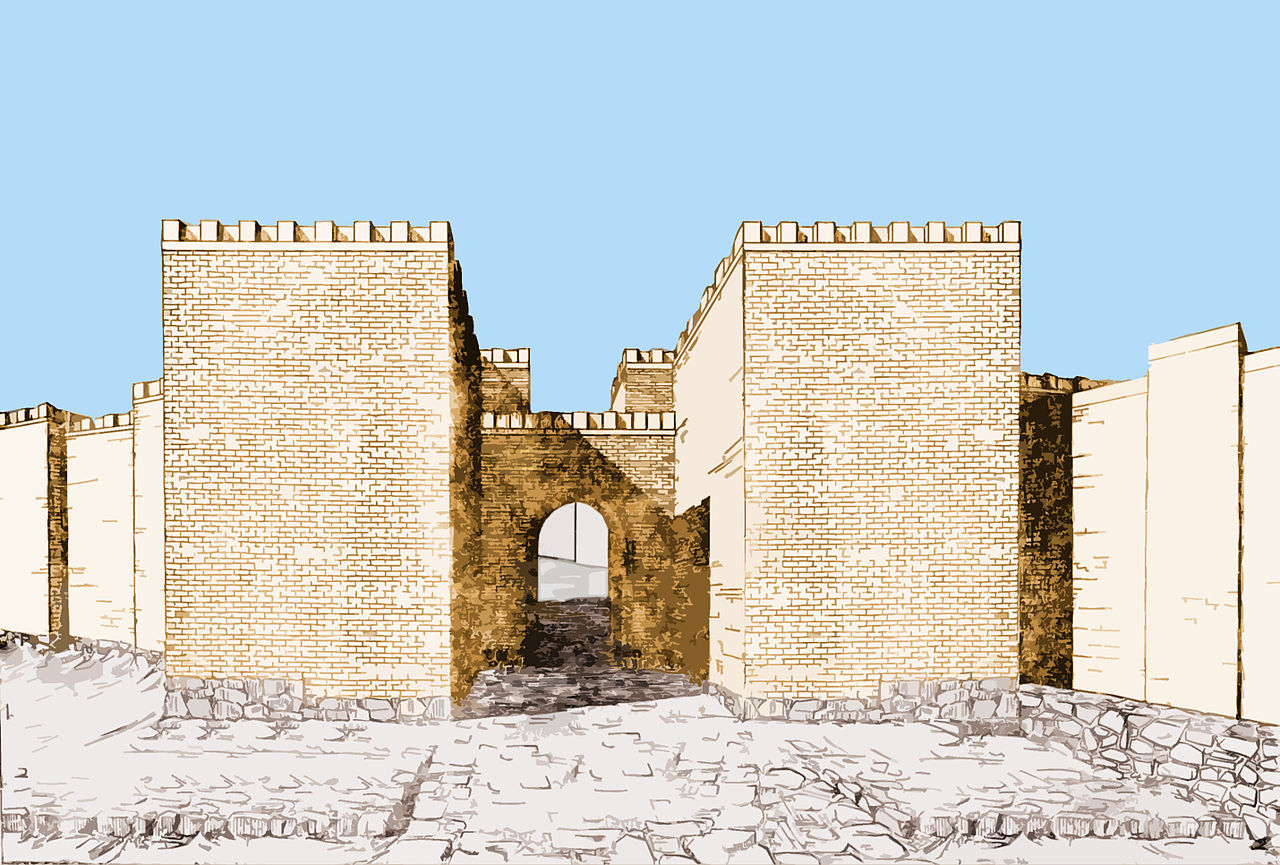 성곽은 메소포타미아 건물스타일로 진흙 벽돌로 만들어졌다. 그런데 현무암 기초위에 진흙 벽돌로 쌓은 것이다. 현재는 원시 벽돌은 벽동 세공의 선이 보이는 정도로 점토 덩어리로 변했다(그림 4)