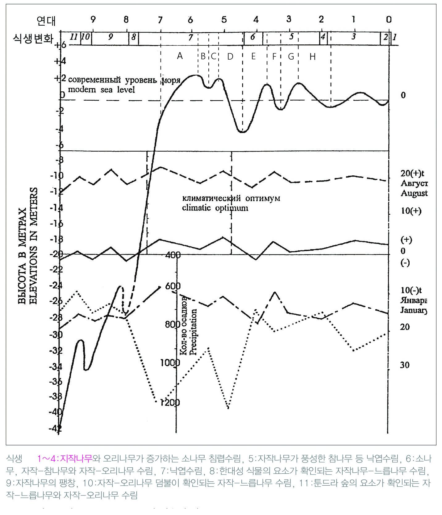 즉 연해주에서 선사시대 문화의 이동이 있는 기간은 6500~6000B.P.과 3400~2900B.P.인데, 현재 보다 따뜻한 시점이며, 기온 상승기에서 일어났다는 점을 알 수 있다.