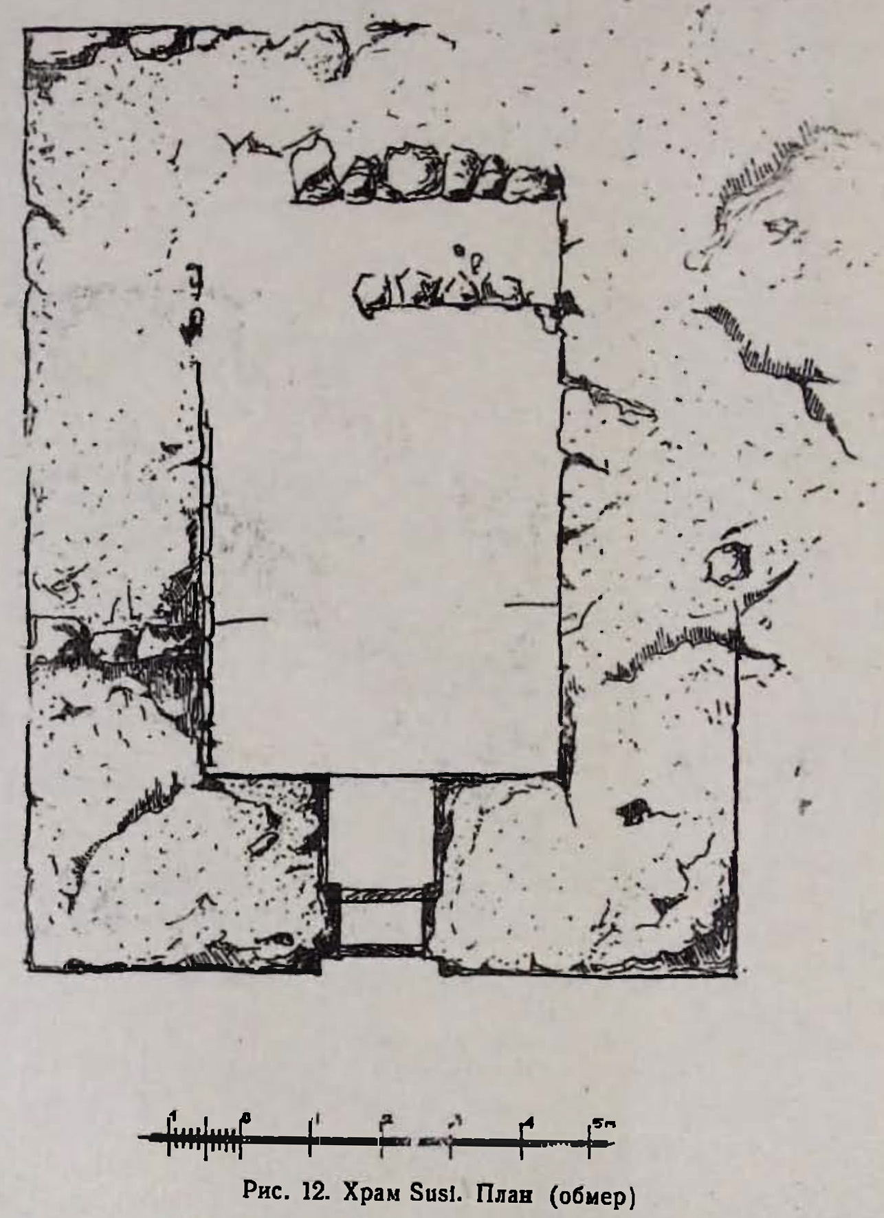 우라르트의 최대전성기 때 세워진 것으로 알려진 에레부니는 2개의 사원지가 가장 주목받는다. 특히 수시 사원이라고 이름 지워진 곳에서는 1958년에 Argishti I세가 Ivarsha(신)을 위해서 지었다는 비문(설형문자)이 발견되면서 이곳이 에레부니라는 것을 알게 해 준 곳이다(그림 3). 비문은 사원의 입구에서 발견되었다. 수시 사원은 칼디 신의 사원과는 달리 면적이 40㎡정도 밖에 되지 않는데, 메소포타미아 건축 스타일이라고 한다. 전체 평면적은 10.00 × 13.45 m이지만, 내부 면적은 5.05 × 8.08 m 정도 밖에 되지 않는데, 벽이 매우 두텁다(그림 2).