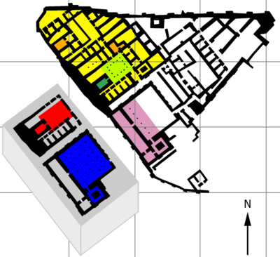 그림 6. 오른쪽이 예레부니 성곽의 평면도, 왼쪽의 붉은 색이 수시 사원을 재건한 모습이다.