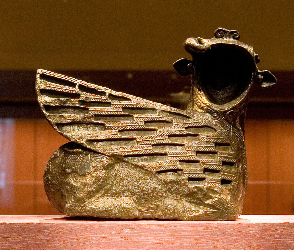 그림 2. 우라루투 왕좌의 왼쪽 장식, 날개달린청동황소, 에르미타주 박물관, 같은 유물로 왕좌의 오른쪽을 장식한 유물은 브리티시 뮤지엄에 보관되어 있다.