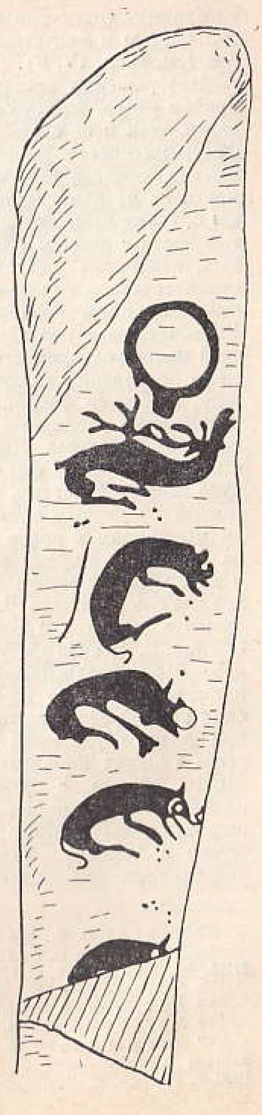 이 사슴돌에 그려진 호랑이는 코시-페이 사슴돌과 달리 몸을 반쯤 푼 채 발견된다. 이런 상태의 호랑이는 아르잔-2호의 5호묘 남성의 철검에서 발견된 바 있다.
