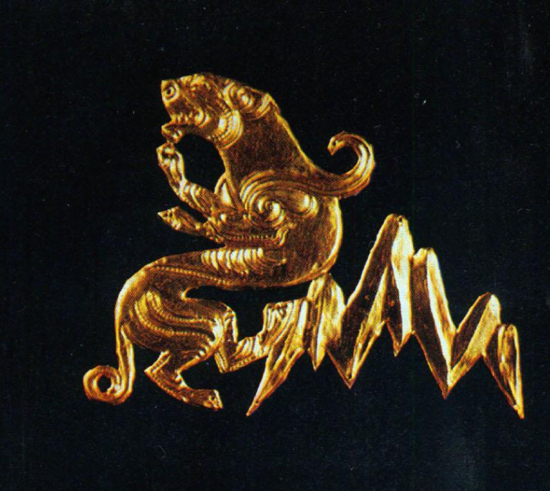 표트르 1세의 수집품 가운데서 언뜻보면 맹수처럼 생긴 동물이 말을 물어 뜯고 있는 동물투쟁문양(그림 1)이 있다. 맹수는 S자로 몸을 꼬고 있고 작은 날개를 달고 있다. 앞다리와 뒷다리에는 〈○〉 표식이 있다. 그런데 이 동물의 머리에는 산염소의 뿔이 달려 있다. 뿔을 제외하고는 몸통의 표식은 알타이 동물장식(그림 2), S자로 굽은 날개달린 맹수는 카자흐스탄 이식(그림 3) 유적에서 발견되어 스키토-시베리아 문화권의 기원전 5세기 맹수변형이다. 그런데 이 동물에 페르시아 그리핀(그림 4)에서 볼 수 있는 뿔이 달려 있는 것이다.