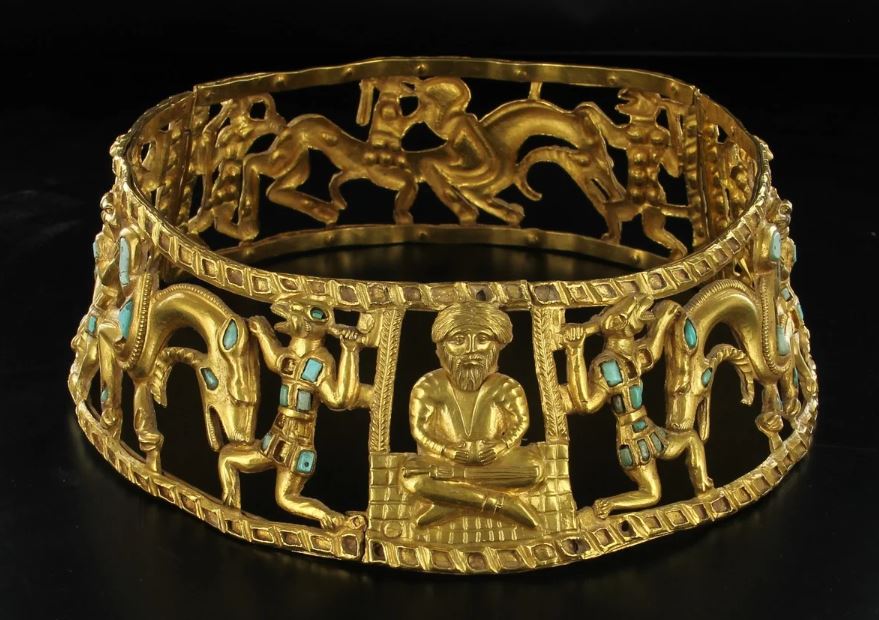 사르마트 문화(기원전 4~기원후 2세기)의 코비야코프스키 무덤 10호에는 특별한 금박장식이 붙은 관이 발견되었다. 주인공은 여성인데, 관과 목걸이를 착용하고 있었다. 특히 목걸이는 화려하기도 하지만 사료적 가치가 큰 유물로 여겨진다.
