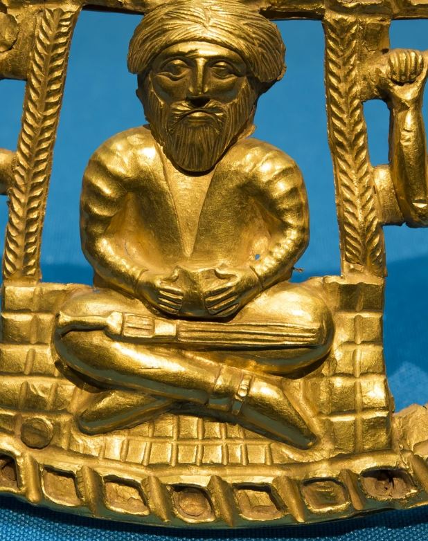어찌되었던 목걸이에서는 여러 단서를 찾을 수가 있는데, 우선 그 중에 하나는 중앙의 남성은 잔과 검을 보여주기 때문에 군대의 우두머리와 제사장을 겸했을 가능성이 있다는 점이다. 특히 러시아 연구자들은 남성의 자세에 주목한다.(왜냐하면 양반다리하는 자세가 매우 불편한 서양인들이 많다.) 일종의 명상자세로 신성한 인물이었을 것으로 생각된다.