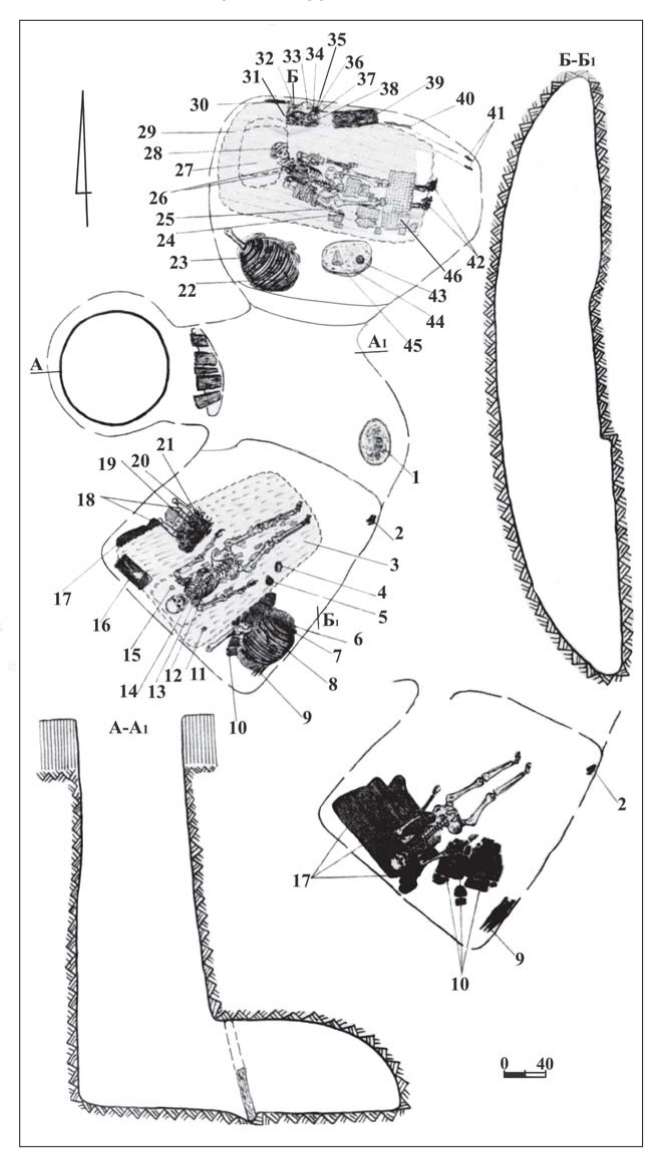 그림 2. 질료니예 유적 2호 쿠르간의 2호묘 평단면도