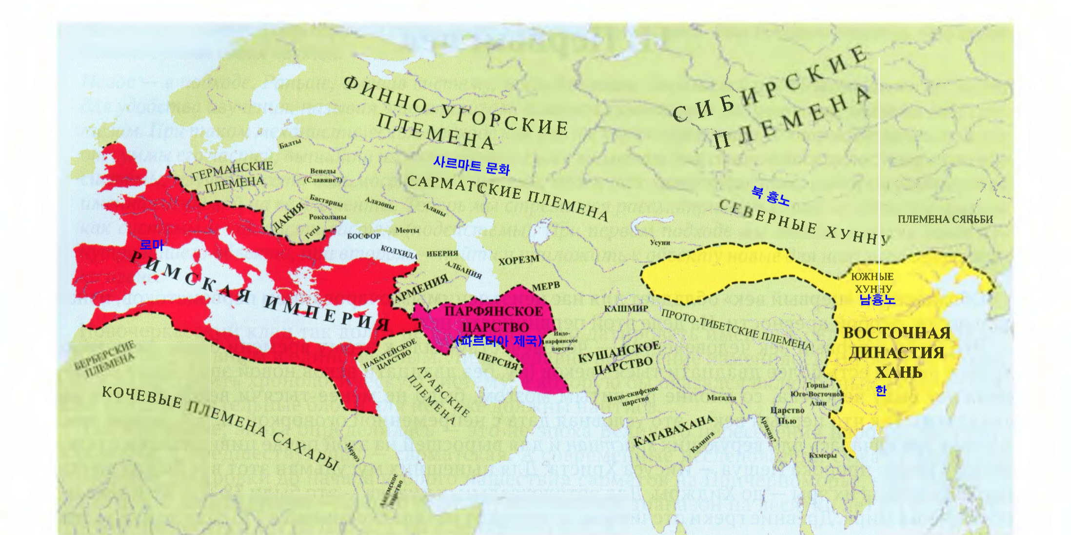 그림 1. 1세기 유라시아의 여러 제국(클레인 2016)