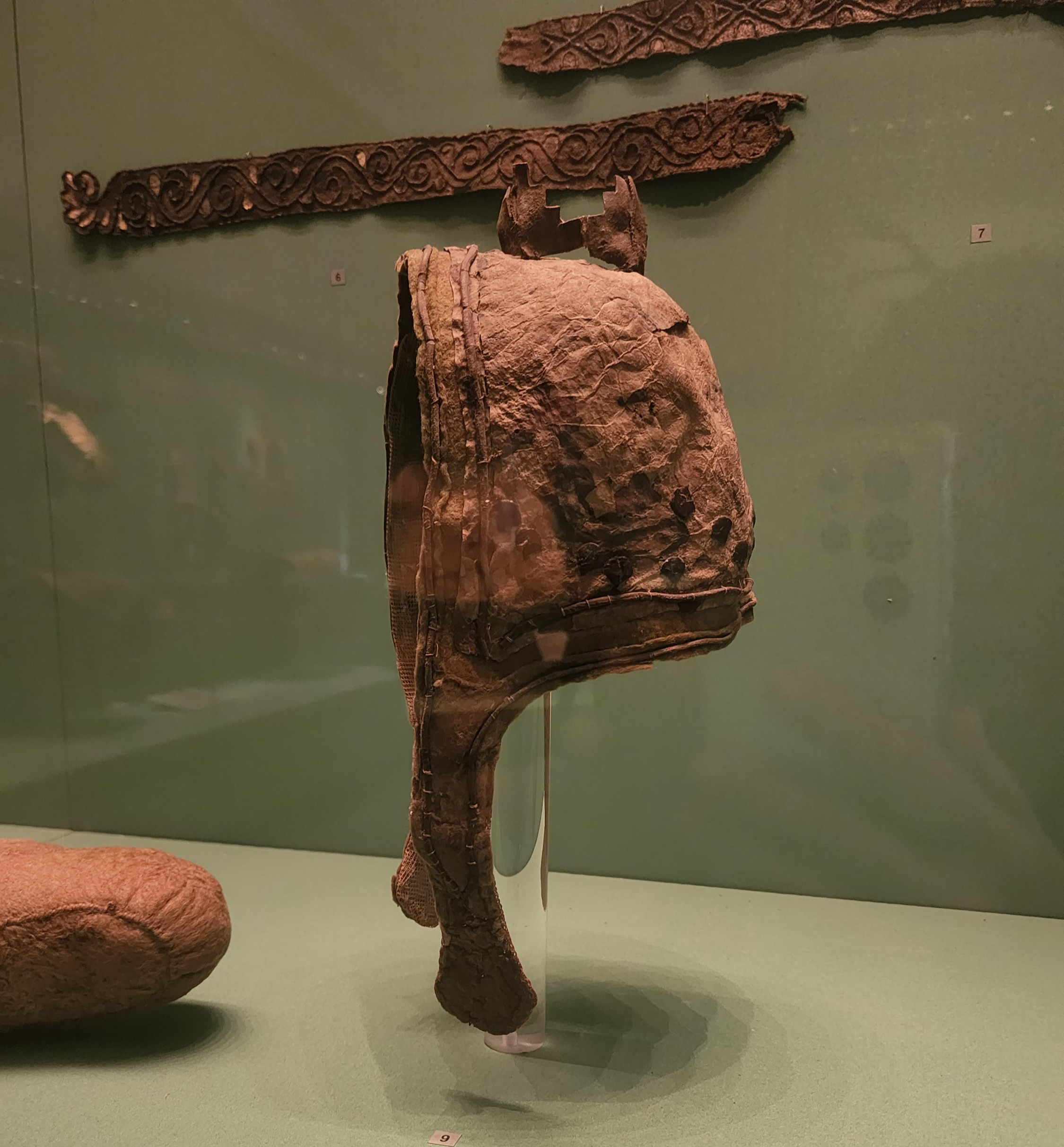하지만 실물자료가 발견되는 알타이에는 고깔모자(물론 하위 유형은 여러 가지이다) 외에 그냥 둥글고 귀를 덮는 흔히들 투구형 모자라고 부르는 자료가 알타이에서 발견되었다.