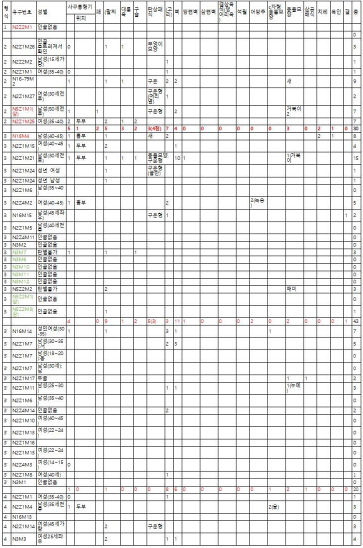 가령 1호라는 무덤이 있으면, 무덤의 생긴형태+옥기의 종류+양을 살피는 것이다.