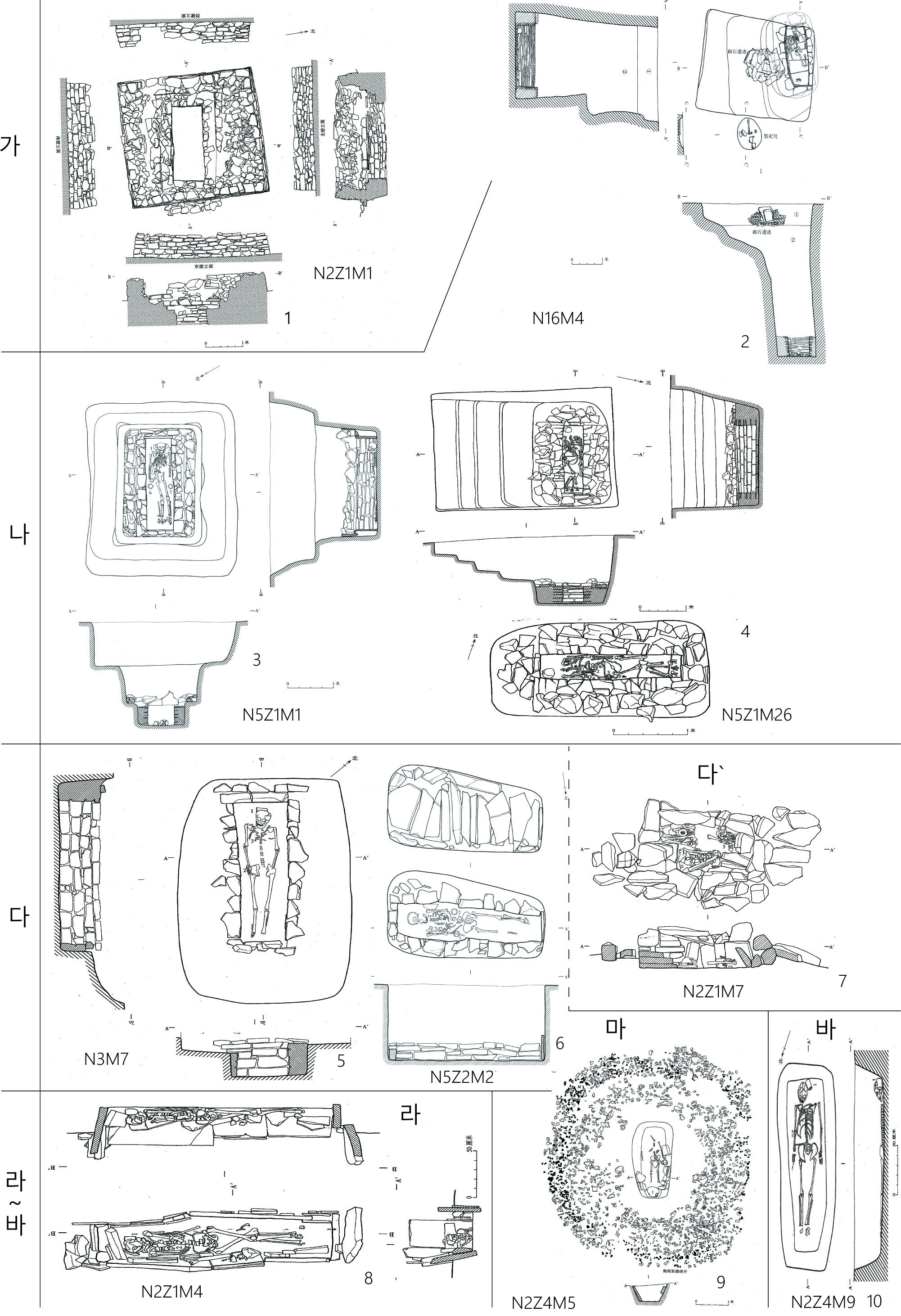 만약에 모든 무덤이 신체크기와 비슷한 크기였다면, 이 부분은 필요 없었을 것이다. 그러나 이 유적에는 이차장 무덤이 몇 기 확인되었다. 그렇다면 이 부분도 고려되어야 함으로, 일차장과 이차장도 나눌 수 있다. 크기는 작지만 대부분 석관묘이다. 구체적으로 다형식으로 보이는 석관묘이다. 그래서 다`라고 명명했다. 일차장과 이차장이 아니라면 거의 무덤구조는 같다고 보기 때문이다.