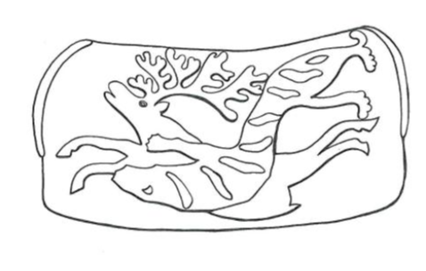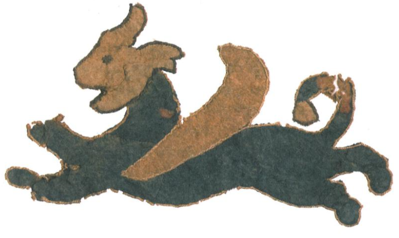 한 점은 몇 번째 말의 안장 덮개인지는 문헌에 기록되지 않았고, 상태가 좋지 않아서 간단한 그림만 남아 있다. 다른 유물과는 달리 사슴머리에 화려한 뿔이 달려있고, 날개가 있는 아플리케가 장식되어 있다(그림 6)