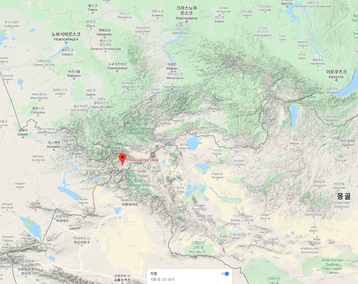 어제부터 아크 알라하 3유적의 1호분 얼음공주와 가장 가까운 곳에 있던 아크 알라하 1유적의 1호분 남성무덤을 살펴보고 있다. 두 유적의 거리는 3km 가량이다. 아크 알라하 3유적에서 서쪽으로 3km 떨어진 곳에 얼음공주 무덤이 있었다. 베르텍 마을과 12km 떨어진 곳으로 좀 더 가깝다.