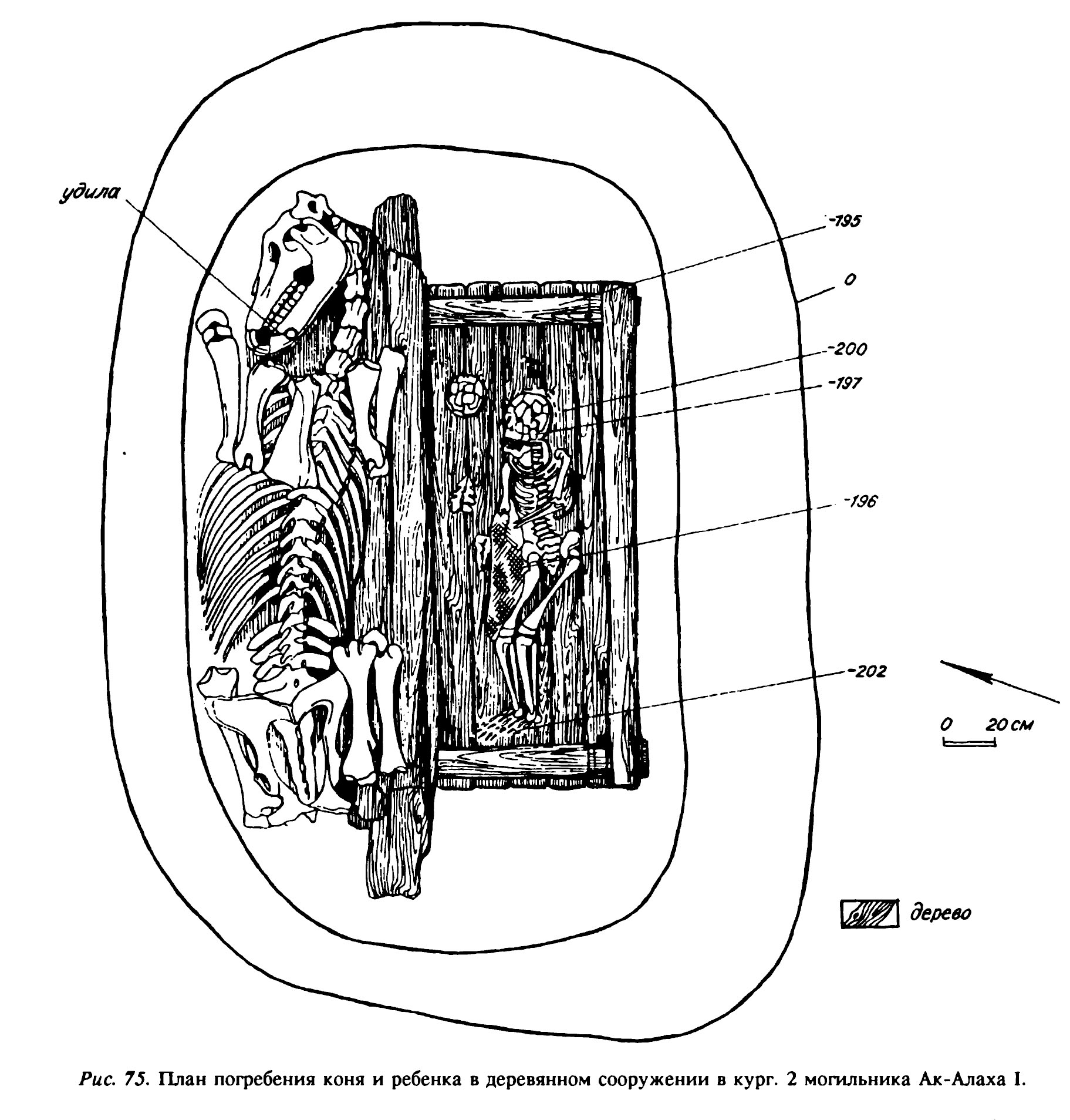러시아 시베리아에서도 알타이 산맥 중에서 가장 높은 고원인 우코크 고원의 아크 알라하 1유적의 2호분은 어린아이의 무덤이다.