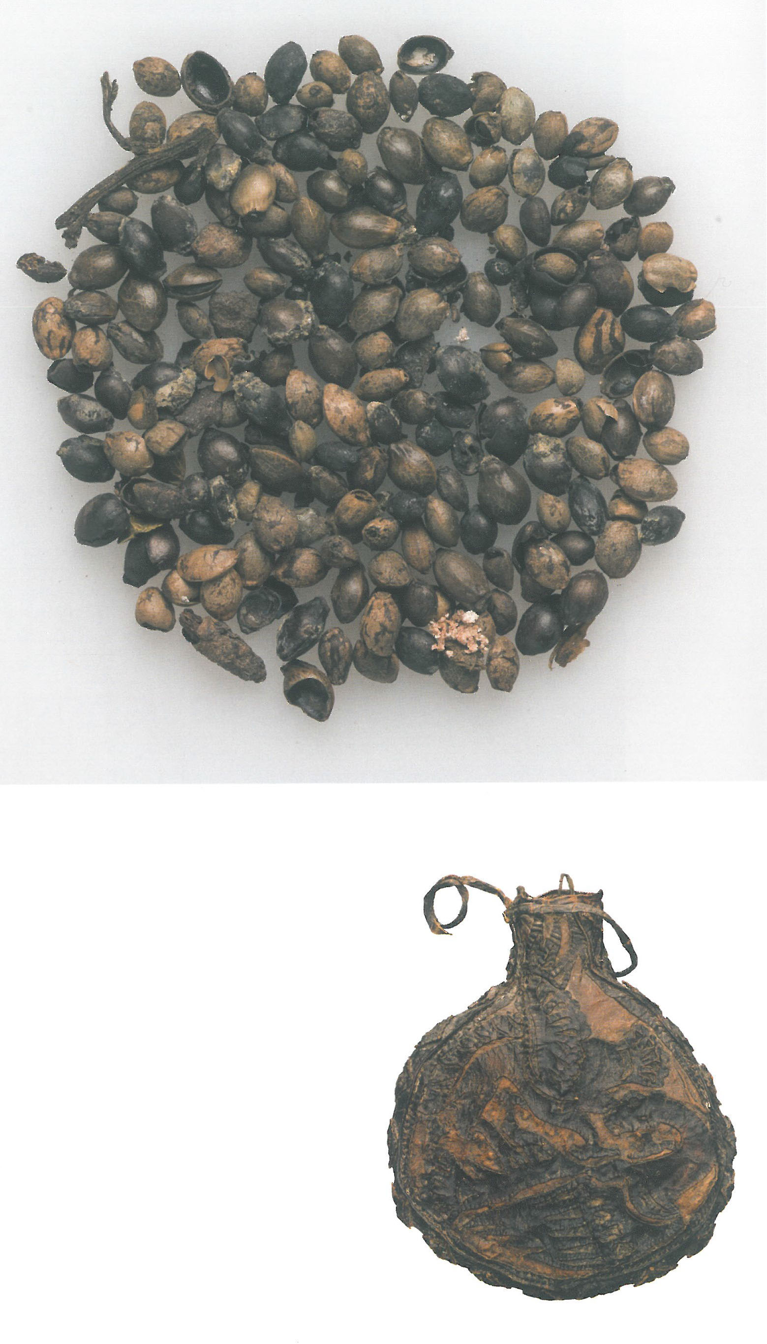 그림 18. 파지릭 2호분 출토 대마씨(위)와 대마씨가 담긴 가죽주머니(아래)
