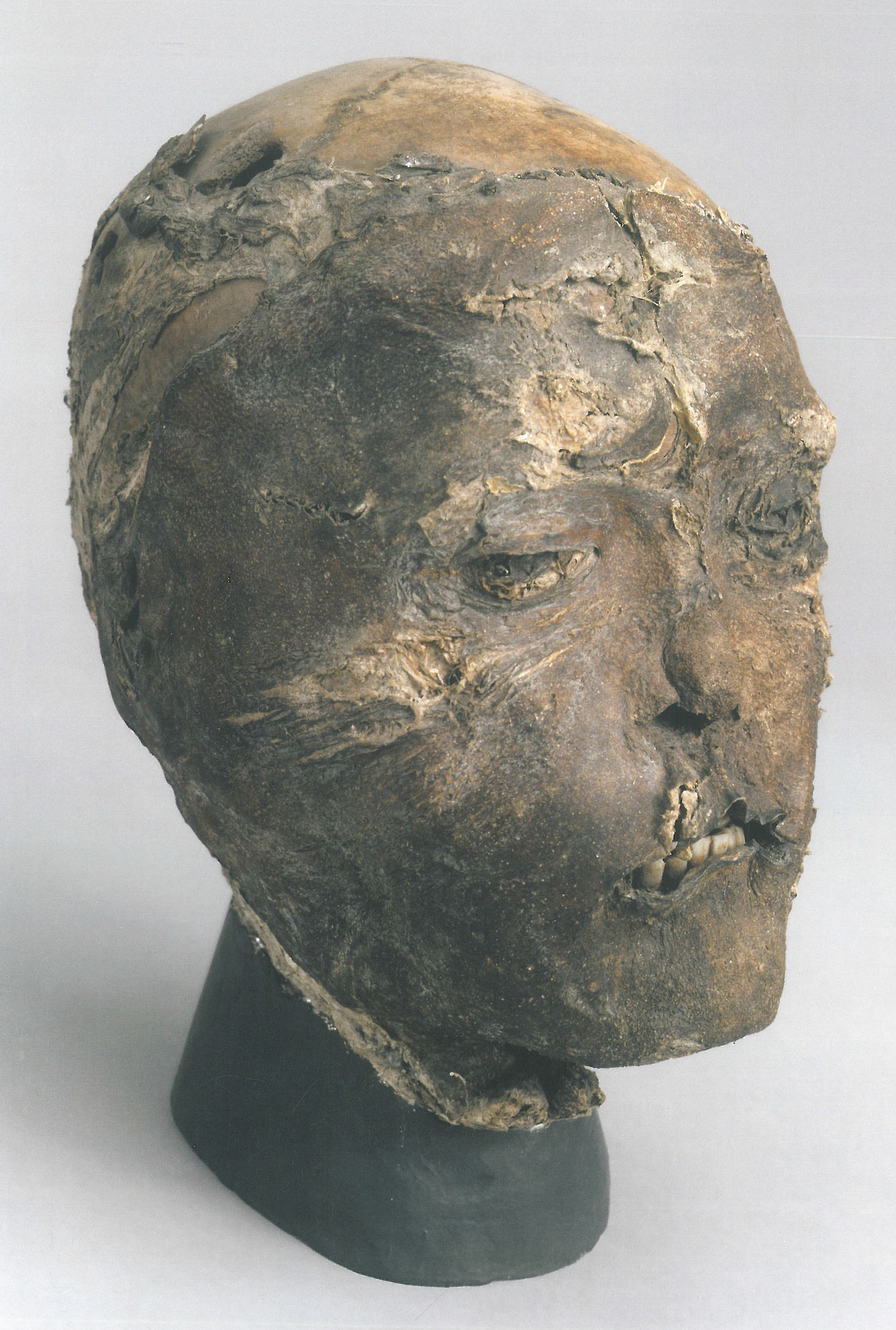 그림 3. 파지릭 유적 2호분의 남성미라 두부, 그림 2의 상단과 같은 미라.