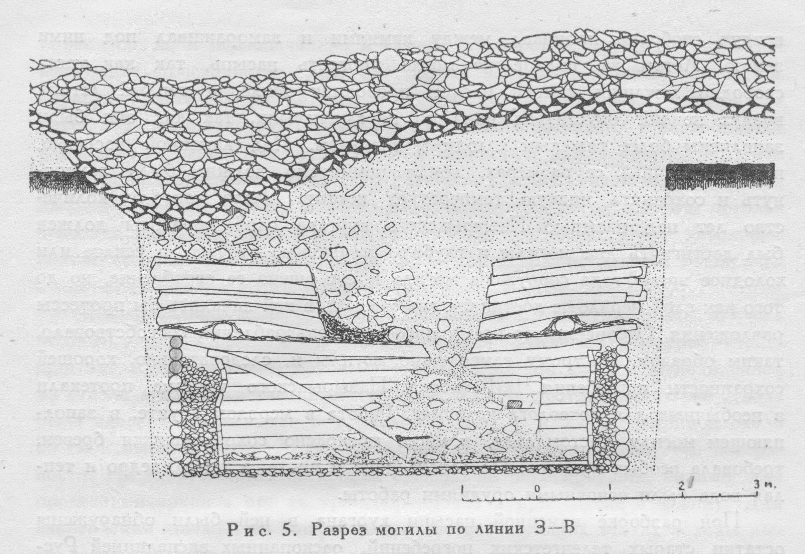 그림 6. 파지릭 1호분의 무덤 단면도(동서방향)