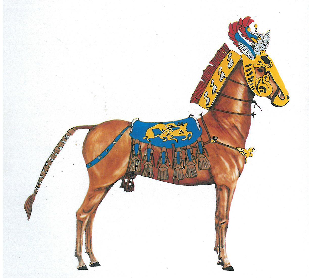 그림 2. 파지릭 1호에서 출토된 말의 복원도, 1991년에 우리나라에서 개최된 스키타이 황금 전 도록에서...