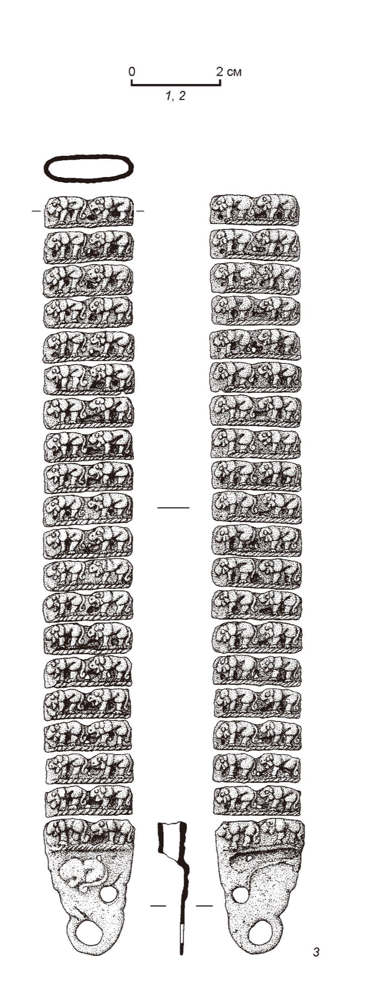 그림 1. 아르잔-2호 무덤방 20호의 청동클립, 고리트(화살통)의 부속품