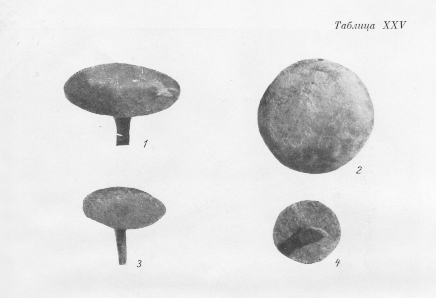 그림 2. 바샤다르 유적 2호 통나무관의 못(1,2,3,4)
