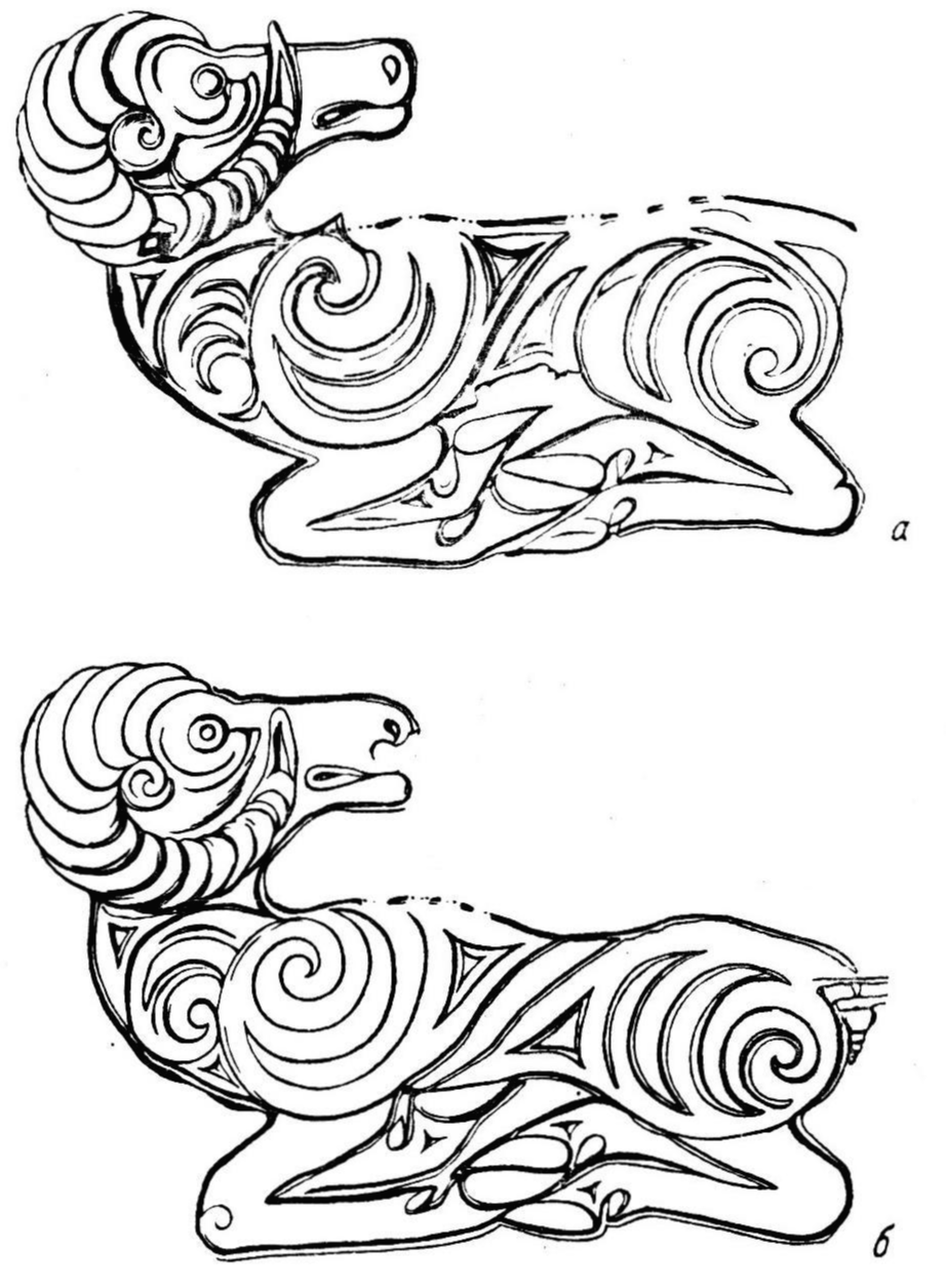 그림 6. 바샤다르 유적2호분의 통나무관의 덮개에 새겨진 산양
