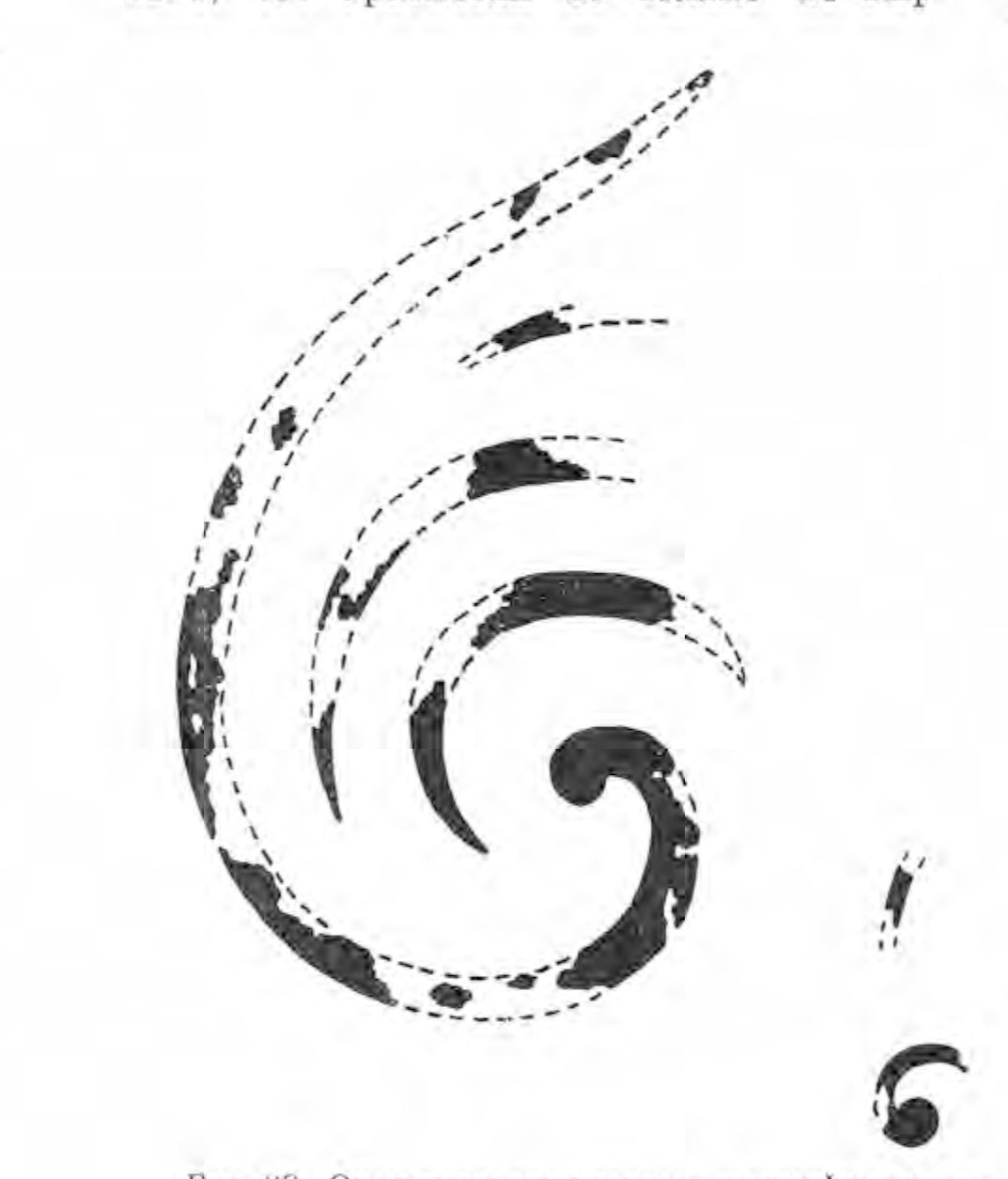 2600년 전 알타이의 바샤다르 유적 2호분에는 남녀가 각각 다른 통나무관에 매장되었다. 통나무관 1기는 뒤집힌 채로 발견되었는데, 여성의 관으로 추정된다. 여성미라는 훼손된 상태로 무덤방 여기저기서 발견되었다. 이 관에는 앞서 살펴본 남성관과는 달리 동물문양이 거의 새겨져 있지 않았다. 그러나 통나무관 덮개 조각에 나선문양(그림1)이 발견되었다. 하지만 통나무관 자체에는 동물문양이 장식되지 않았다. 이 통나무관에도 남성통나무관과 마찬가지로 청동못이 박혔던 구멍이 20cm간격으로 있었다. 청동못의 머리는 3cm가량으로 13점이 무덤방 바닥에서 확인되었다.