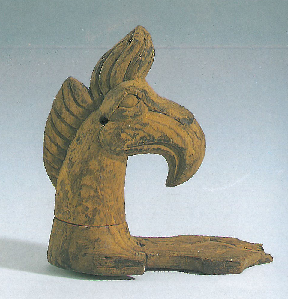 그림 4.투엑타 유적 1호분의 독수리 머리 그리핀 머리형. 굴레장식, 귀 부분에 구멍이 있는데 가죽으로 귀를 만들어 넣었을 것이다. 같은 표현법은 파지릭 유적에서 확인할 수 있다.