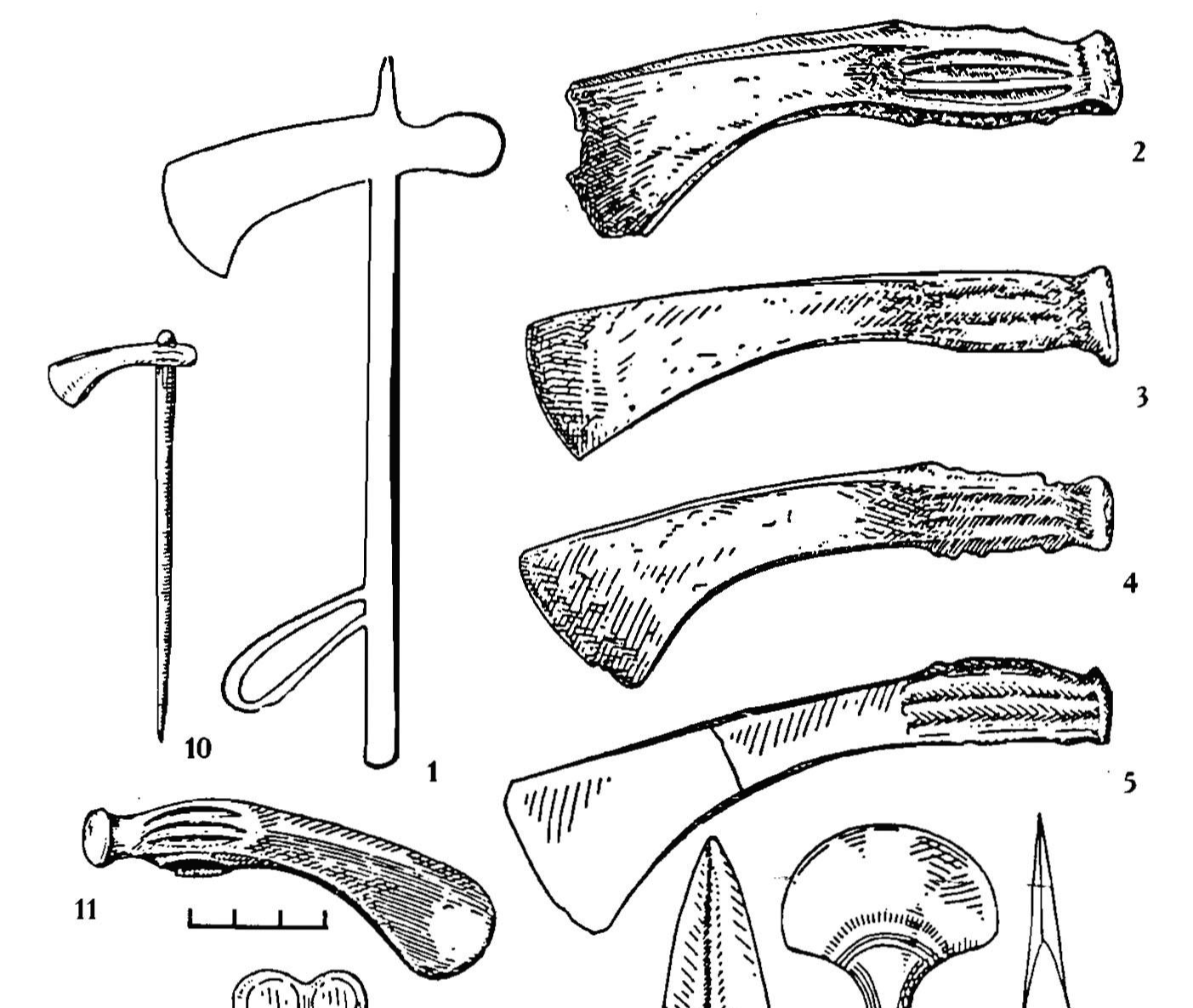 그림 4. 기원전 7~5세기 흑해 스키타이 문화에서 출토된 전투용 도끼(알렉세예프 2003 인용)