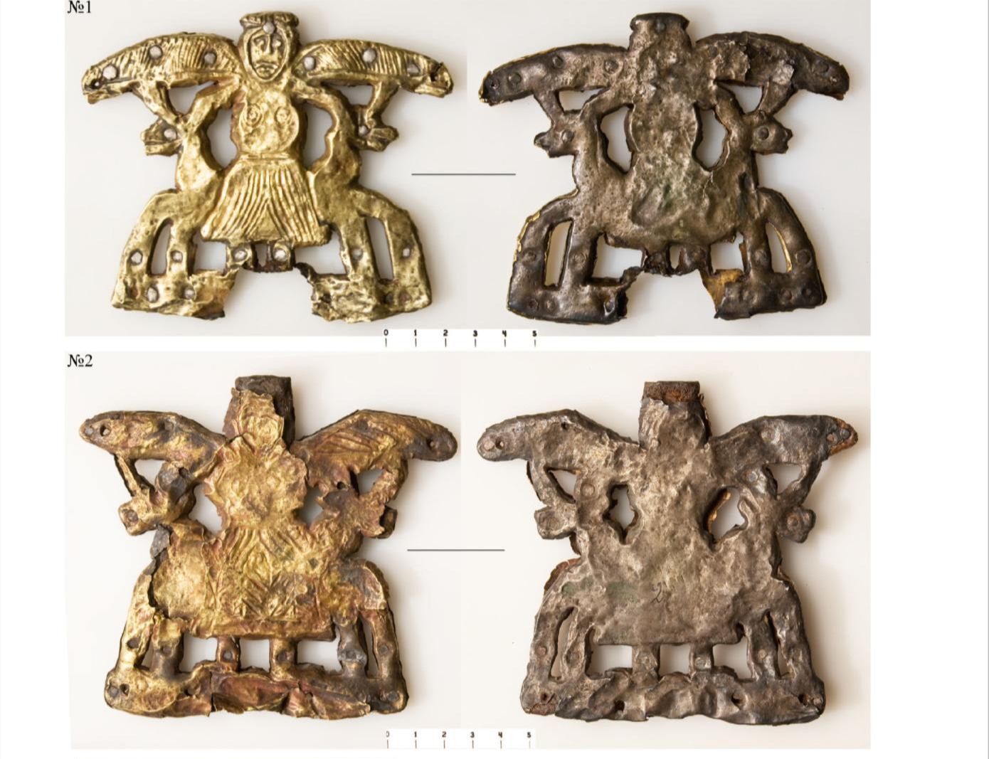 비슷한 유물이 한 점(그림 1-3,4) 더 출토되었는데, 거의 같은 모습이고 같은 방법으로 제작되었지만 여성의 표현으로 보아서, 쌍(pair)은 아니다. 날개의 표현이 다르고, 여성의 하반부 옷자락 표현, 못의 위치에도 차이가 있다. 처음부터 의도적으로 쌍으로 만들었지만, 현재 유물의 상태가 별로인게 아니다. 처음부터 그림 1의 여성과 비슷하게 만들었으나 더 잘 못 만들어졌다.
