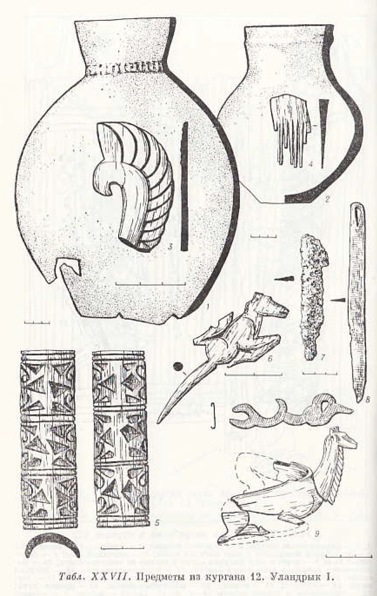 그림 1. 울란디르크 I유적의 12호분의 유물 그림 3과 번호 일치