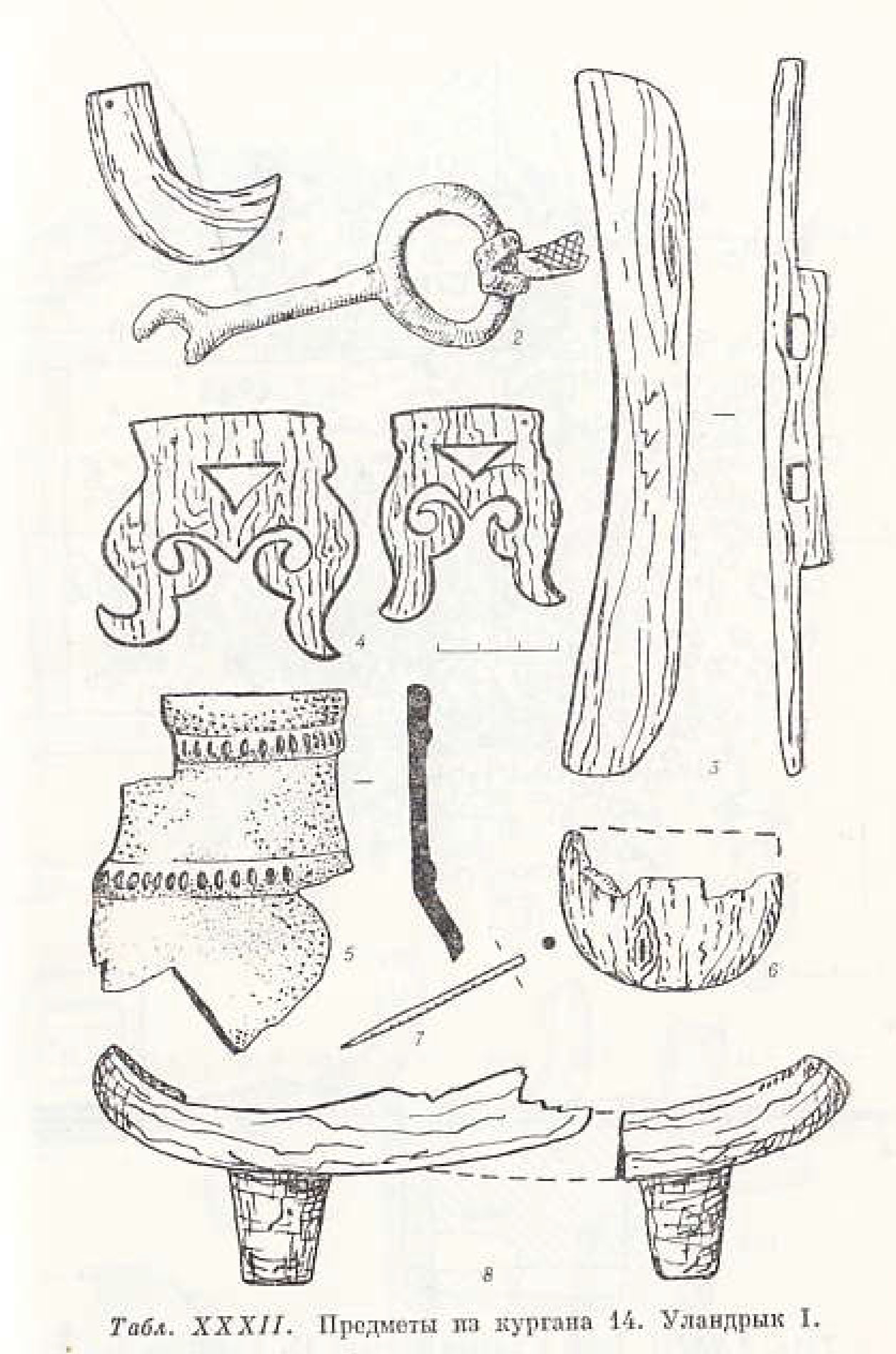 그림 6. 울란디르크 I유적의 14호의 유물, 번호는 그림 5와 일치
