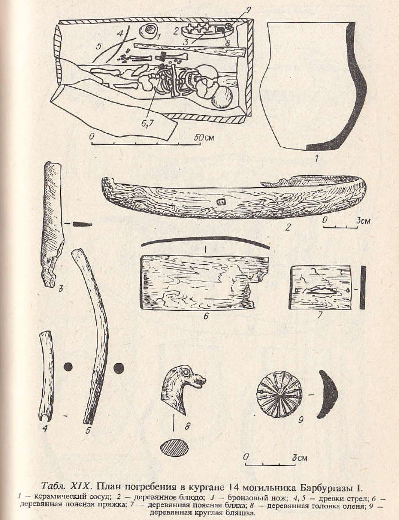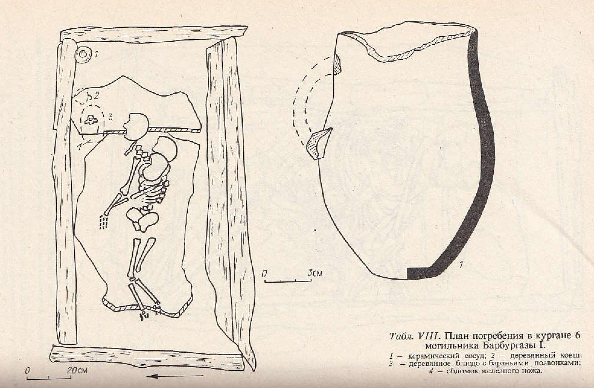 바르부르가지 I유적에서 통나무관은 1기가 확인되었고 다른 아이는 6호, 12호, 14호 석관묘에 매장되었다. 특히 6호의 아이는 두향이 남향을 하고 있다. (앞에서 14호를 나무무덤방으로 잘못 표기했음. 14호는 석관묘(돌널 무덤임)이다)