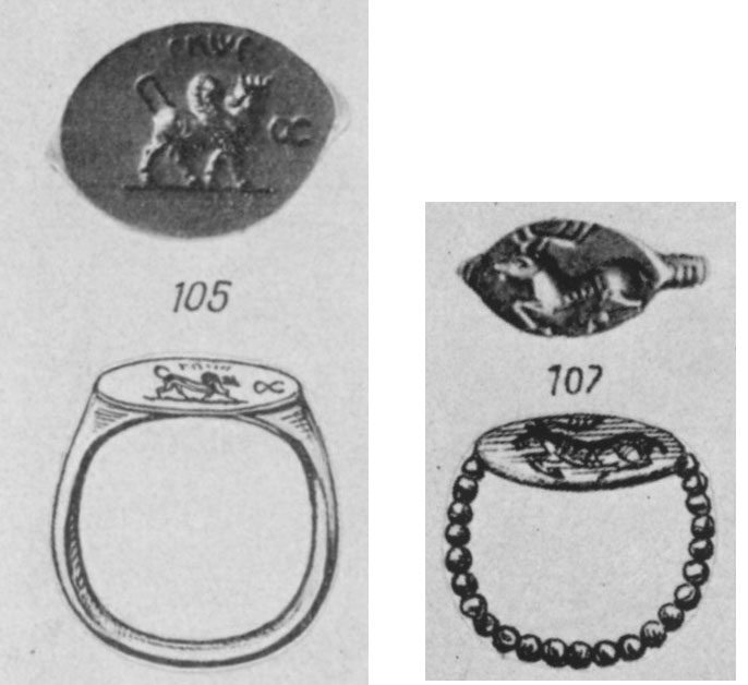 그림 3. 아무다리야 퇴장지에서 출토된 반지 가운데 스키타이 양식의 문양이 있는 반지