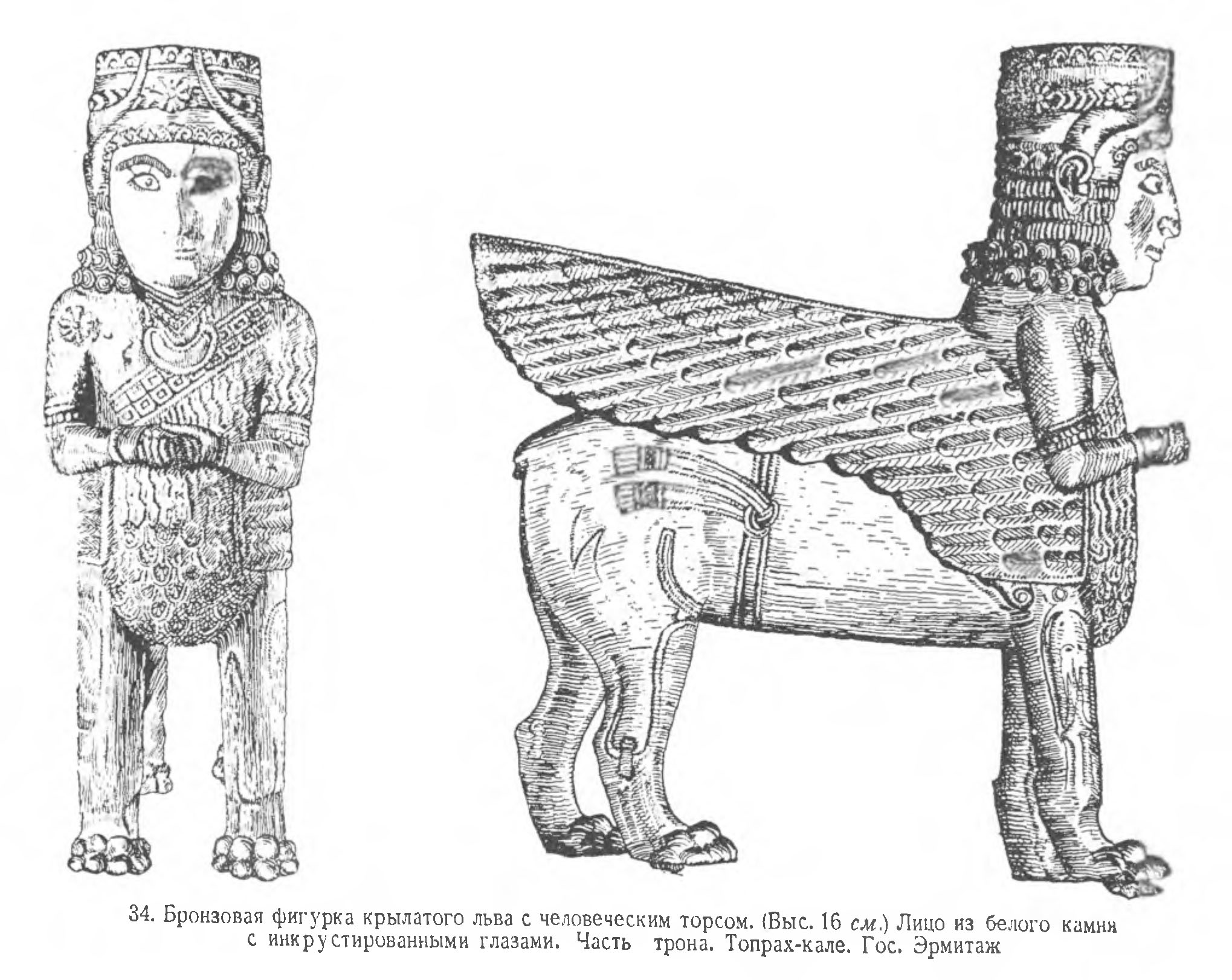 우라르트의 고대 도시인 토파흐 칼레에서 발굴된 유물 가운데 청동으로 제작된 유물 가운데 반인반수 상이 알려져 있다(그림 2, 그림 3).