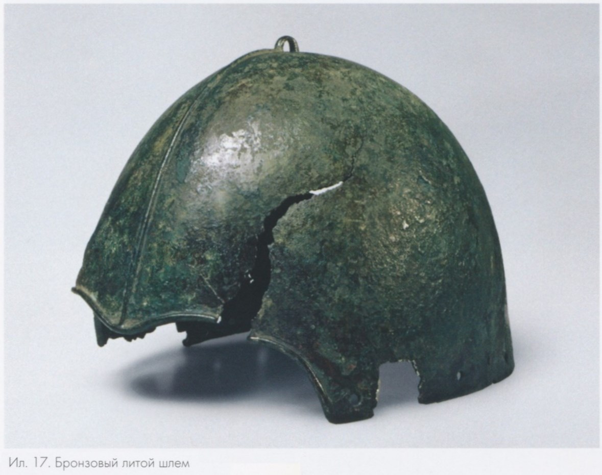흑해 북안에서 발견된 외국(코린트식, 아틱, 트라키아)의 투구는 대체로 연대가 기원전 5세기 이후의 것이다. 매우 오래전에 발굴 혹은 도굴되면서 정확한 유적의 정보가 없다.