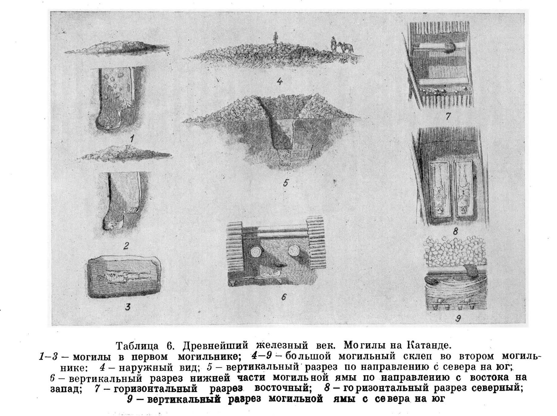 그림 1. 카탄다 유적의 1호(1~3), 2호(4~9) 무덤 발굴