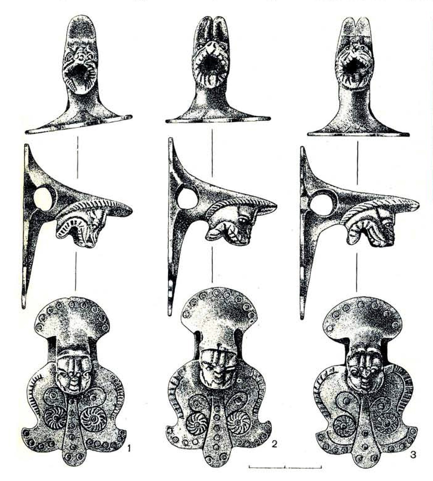 그림 2의 3유물은 스키타이 문화권이 아니라 카미 강 유역에 있던 아나닌스카야 문화(기원전 6~4세기)의 유물이다.