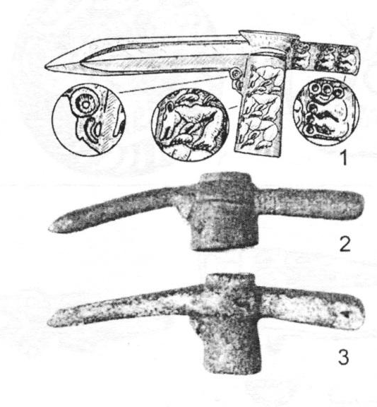 그림 3. 아나닌스카야 문화의 투부, 1-페름 지구의 사라바히하 강 유역 출토, 2-카라-아비즈 성지, 3-우핌 무덤의 최신 자료