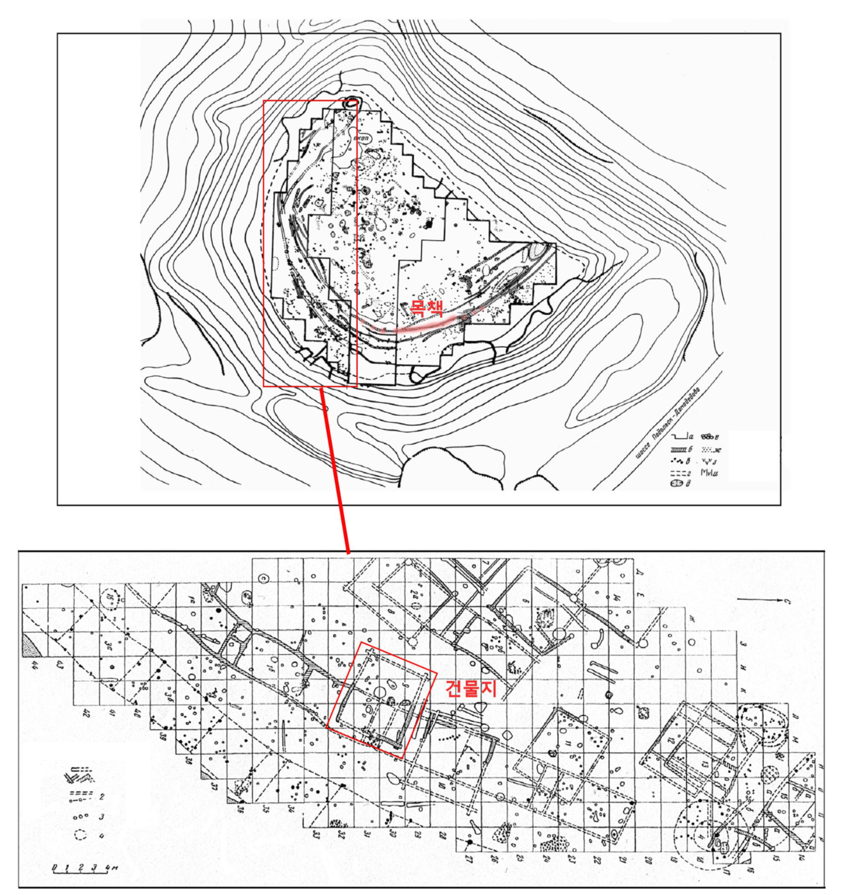그림 3. 투세믈랴 성채의 복원도(위 2개), 트로이츠코예 성채 복원도