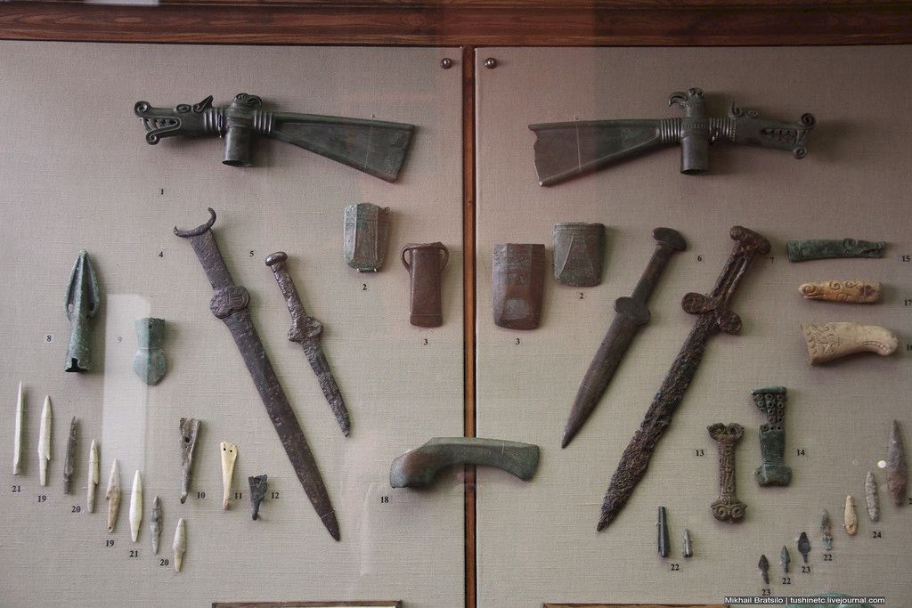 그림 1. 아나닌스카야 문화의 노동도구(전시장에 걸린 도끼는 몇 점 되지 않지만 실제로 가장 많은 금속제품은 도끼이다)