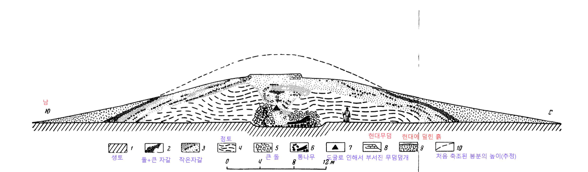 물론 나무구조물 위를 돌로 덮은 후 봉분은 점토(그림 1-4)-->자갈돌(그림 1-2)-->자갈돌+흙(그림 1-3)의 순서로 만들었다.