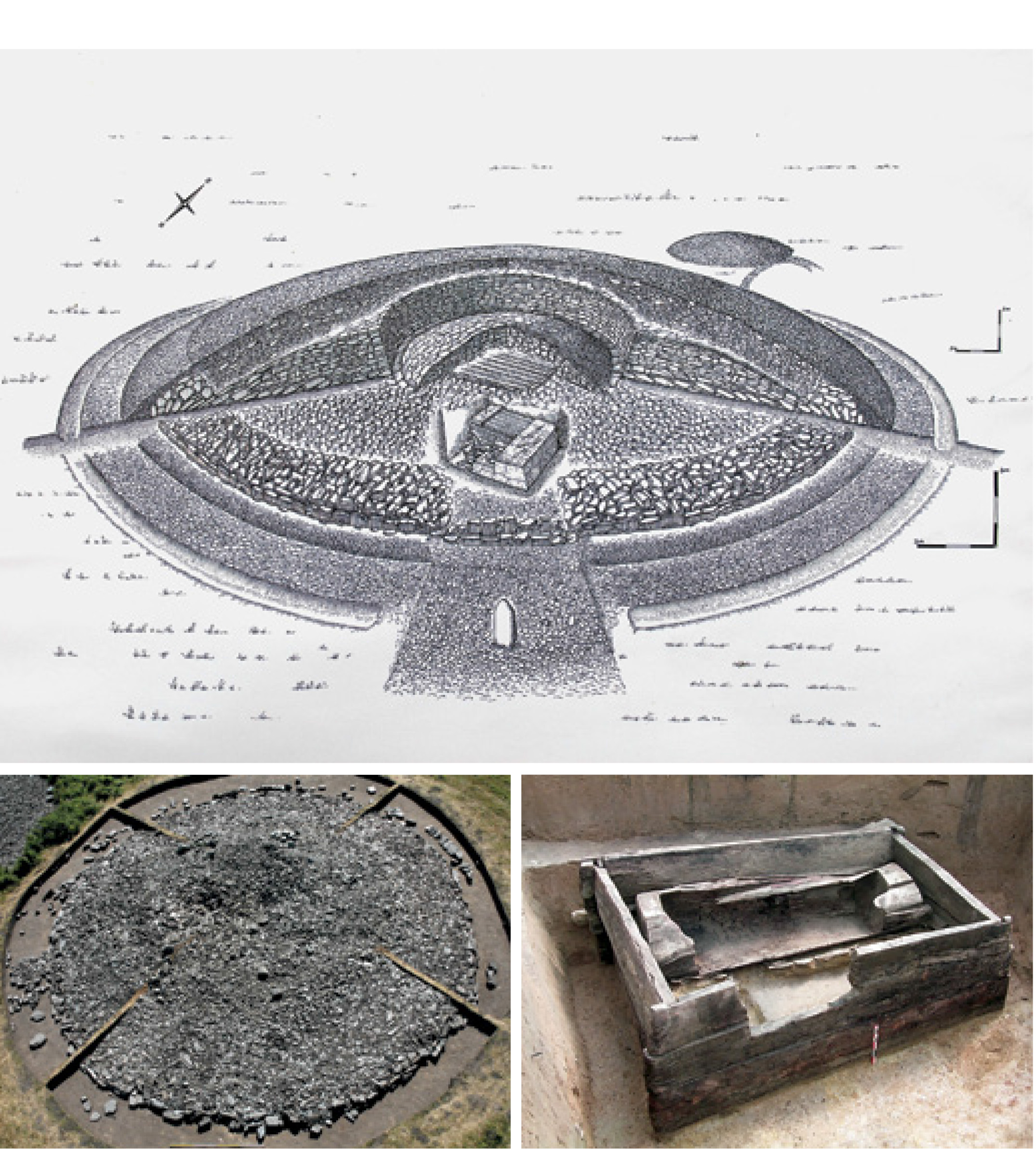 그 중에서 가장 잘 알려진 것은 11호분(직경 31.4× 28.6m, 높이 3~4m)인데, 무덤구덩이 안에 나무방을 넣고 빈공간에는 말 13마리를 묻었다. 나무방 안에는 통나무관이 있었고 남녀가 함께 안치되었다. 무덤은 여러 크기의 돌을 층별로 넣어서 축조했는데, 발견당시에 이미 도굴당한 상태였다.