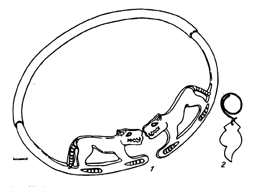 목제로 둥근 고리 끝에 동물장식이 달린 것이다. 고리 끝에 달린 동물장식은 대부분 맹수류 이다. 알타이에서 발견된 여성 목걸이는 동물장식을 여러 마리 달았지만, 남성은 이에 목제고리의 끝에만 달아서 심플하다.