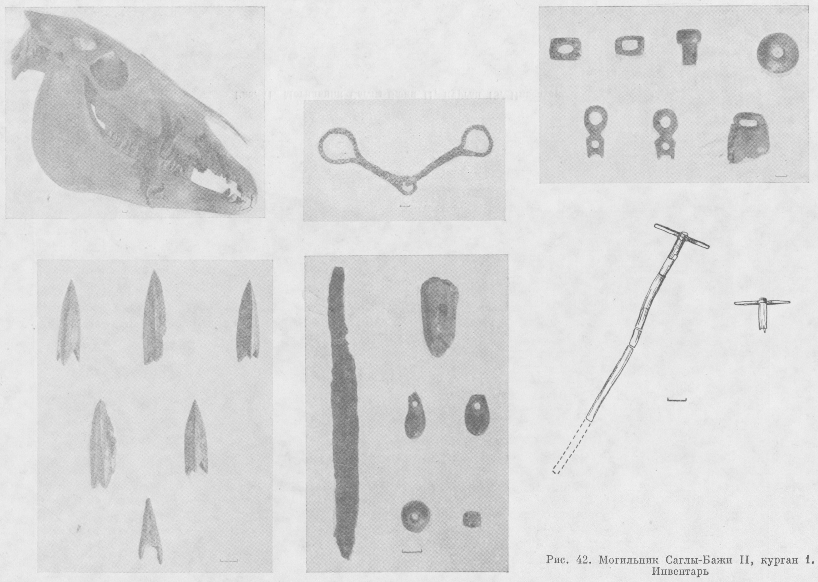 시베리아 투바의 사글리 바쥐II유적 1호는 유일하게 말이 매장된 무덤이다. 뿐만 아니라 통나무가 아닌 나무판을 이용해서 무덤방을 만들었다. 다른 무덤과 사뭇 다른 양상인데 출토유물은 어떤 것이 있을까?