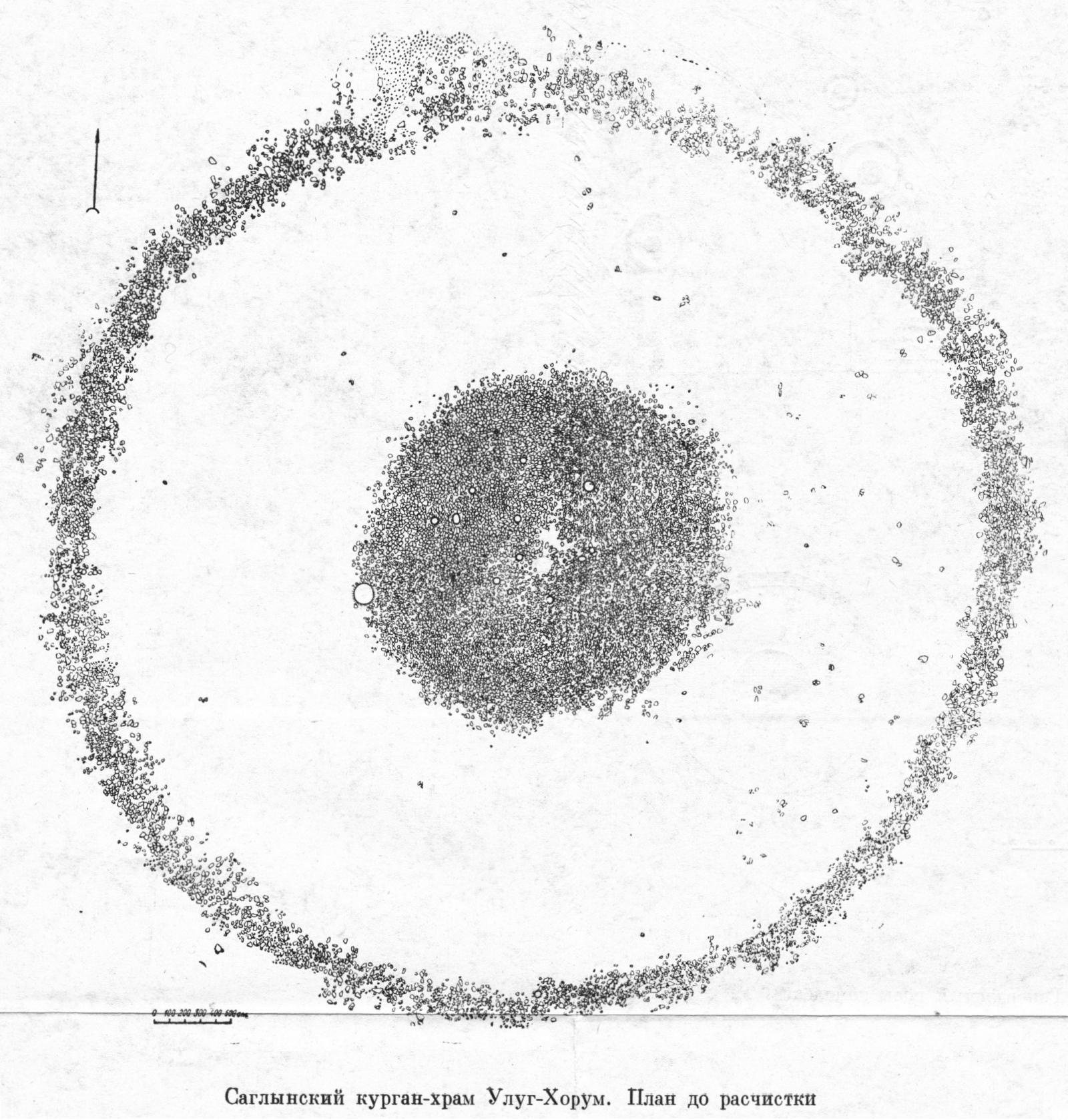 기원전 5세기 시베리아 사글리 바쥐 VI유적에서는 이제까지 보지 못했던 유구가 발견되었다. 무덤과 함께 발견되었지만 유적을 발굴한 그라치는 ‘울루그-호르움’이라고 따로 명명했다. 모두 5기가 존재했고(그림 5) 그 중에 3기를 발굴했는데, 무덤은 아니지만 봉분이 있어서 ‘쿠르간’이라고 한다. 각 유구는 쿠르간이라고 불렀고, ‘울루그-호루움’은 투바의 언어로 매우 큰 돌로된 쿠르간이라는 뜻이다. 태양을 상징하는 제사건물지가 발굴되었다.