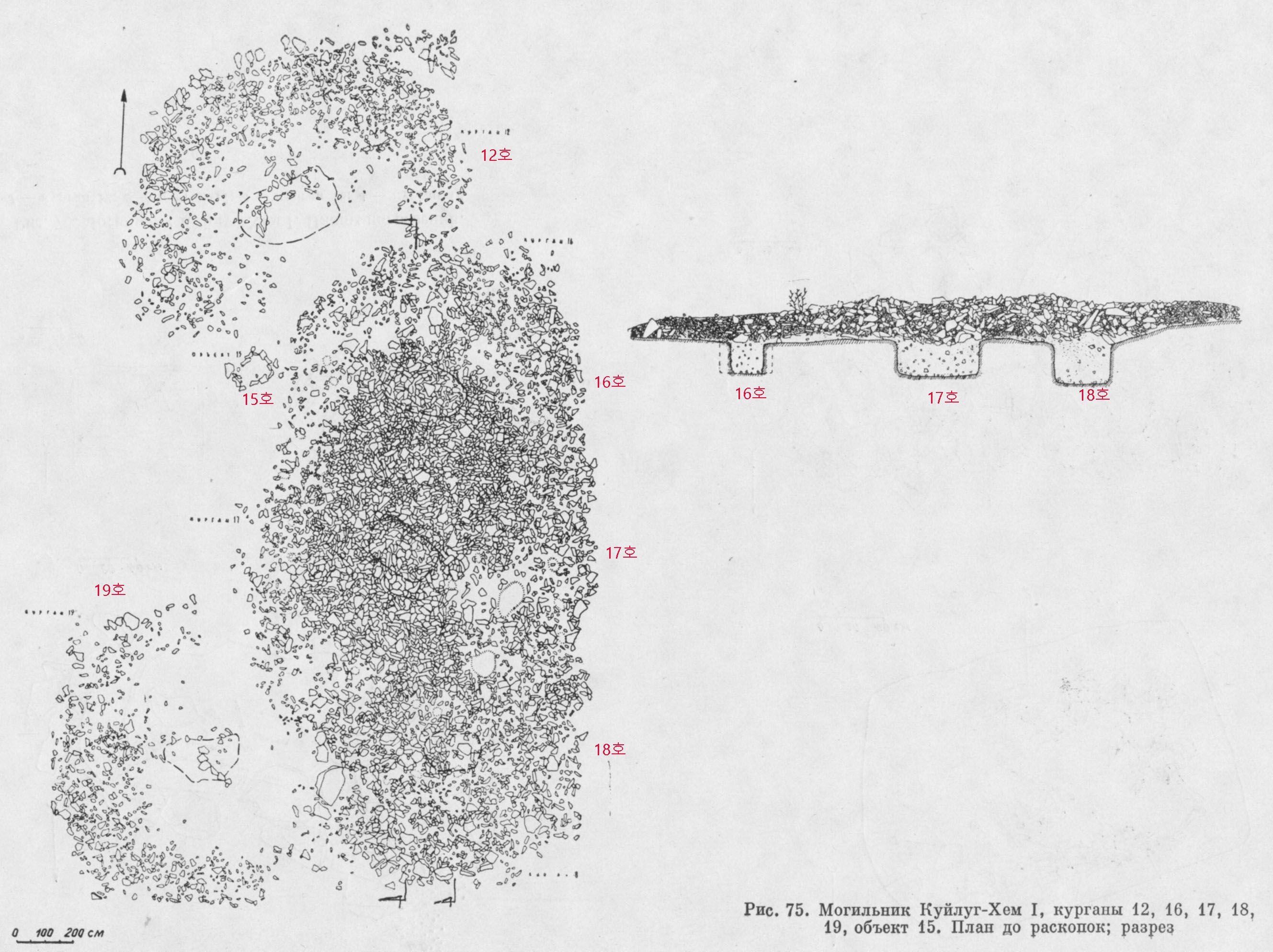 그림 1. 쿠이루그-헴 I유적, 12, 16~19호의 가장 윗면