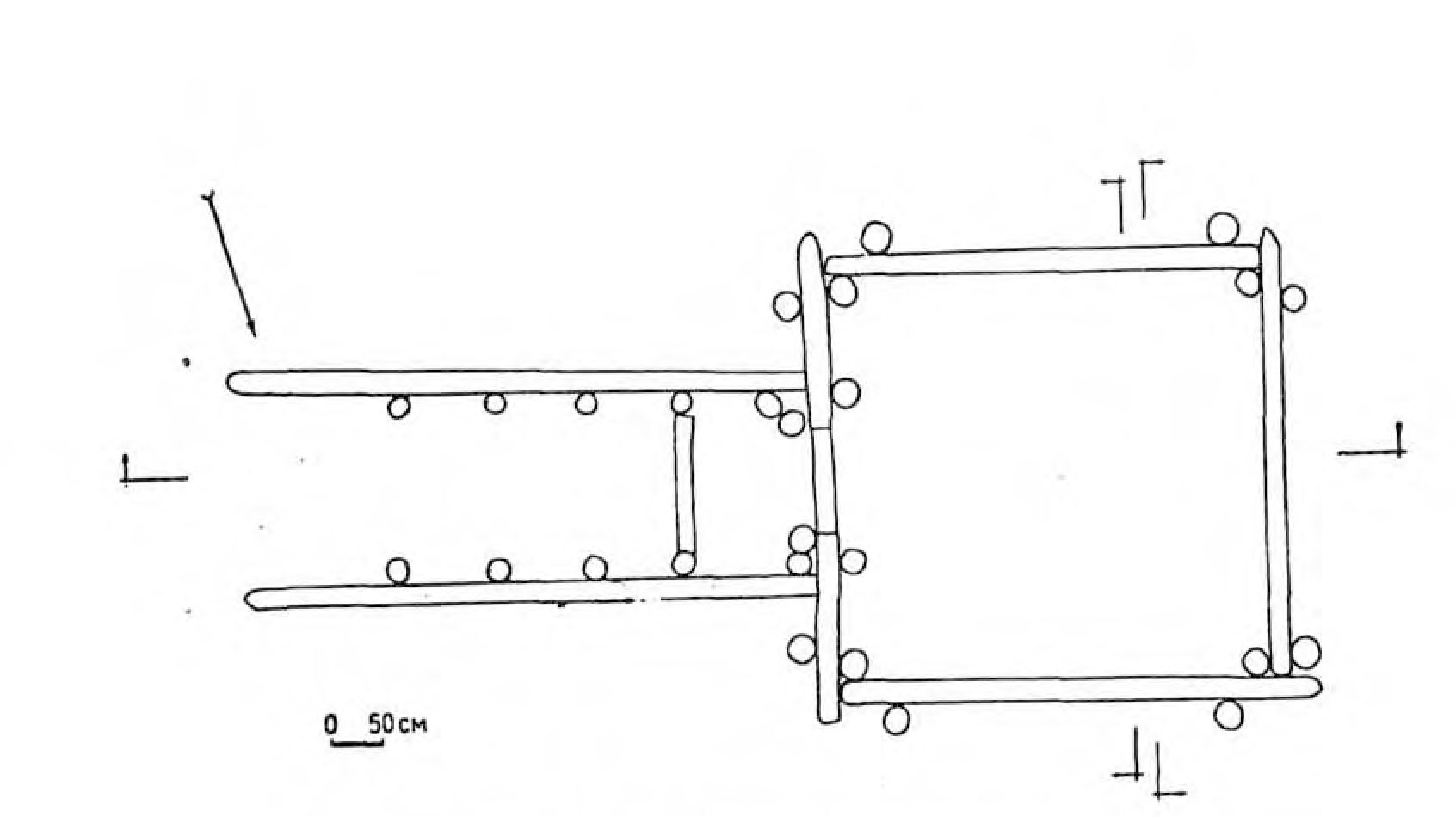 그림 1. 베스샤타르 유적 1호의 지상위 목조 구조물의 평면도