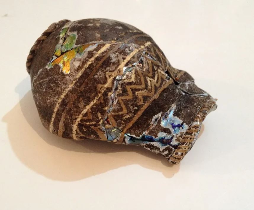 목제그릇의 장식판으로 추정되는 금판도 발견되었다. 여성과는 거리를 두고 나왔지만 이 여성도 목제 그릇을 사용했다는 것을 알 수 있다.